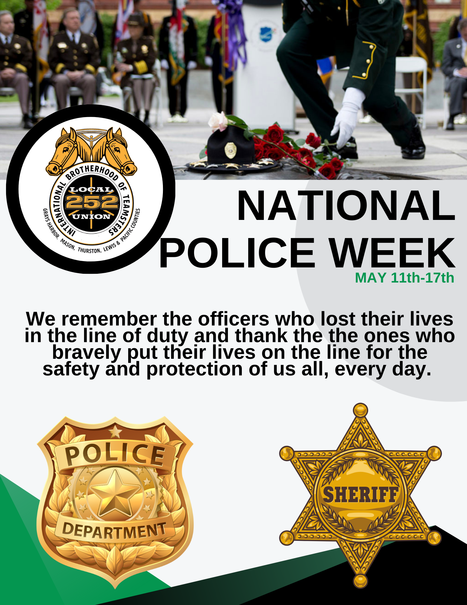 Local No. 252 sends heartfelt thanks to all Police Officers, for their dedicated service to the community. National Police Week occurs every May, the13th-17th this year. The National Law Enforcement Officers Memorial Fund will hold ceremonies, including the 36th Annual Candlelight Vigil, to honor the fallen officers whose names have recently been added to the Memorial.