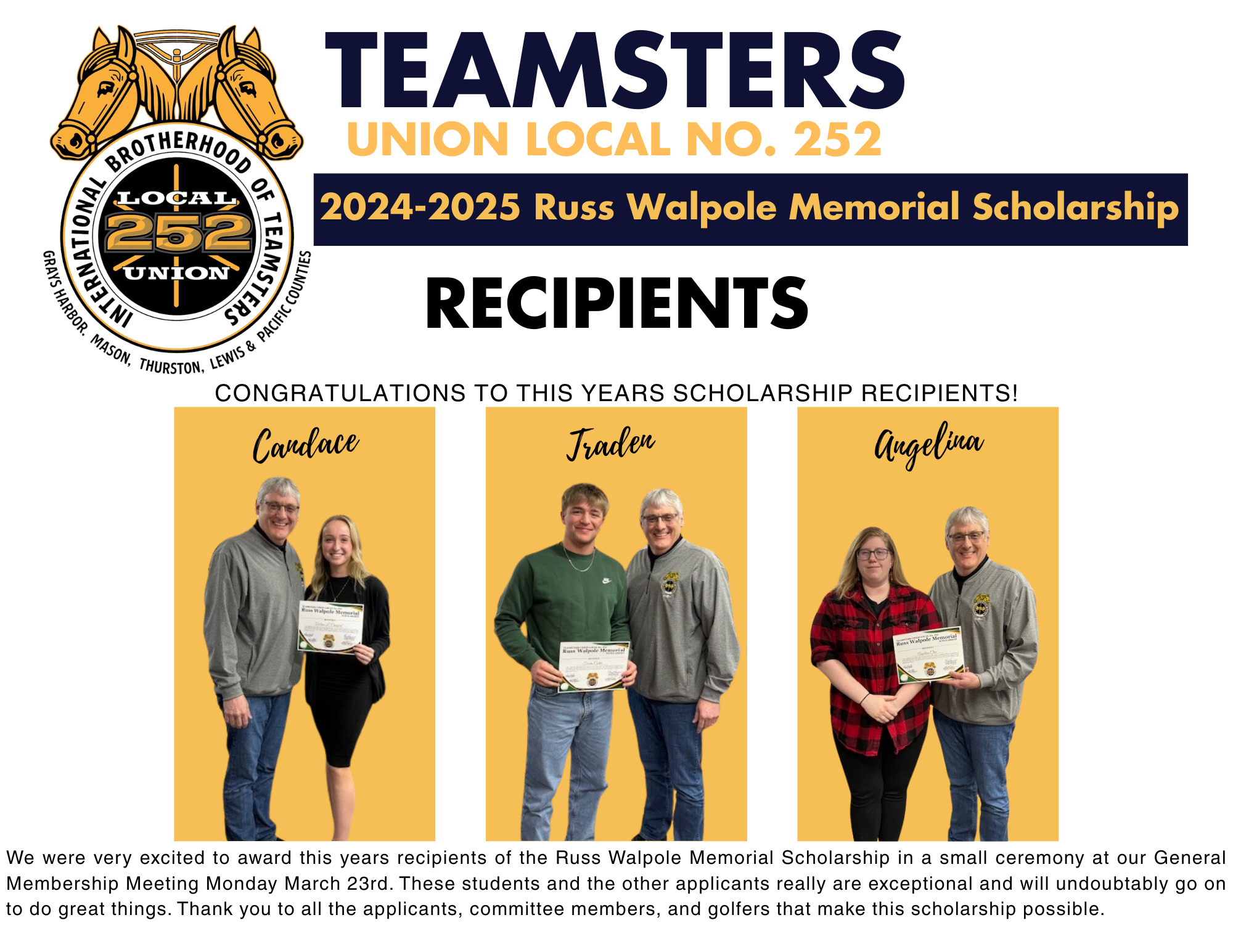 We are happy to announce the recipients of the 2024-2025 Russ Walpole Scholarship Award!